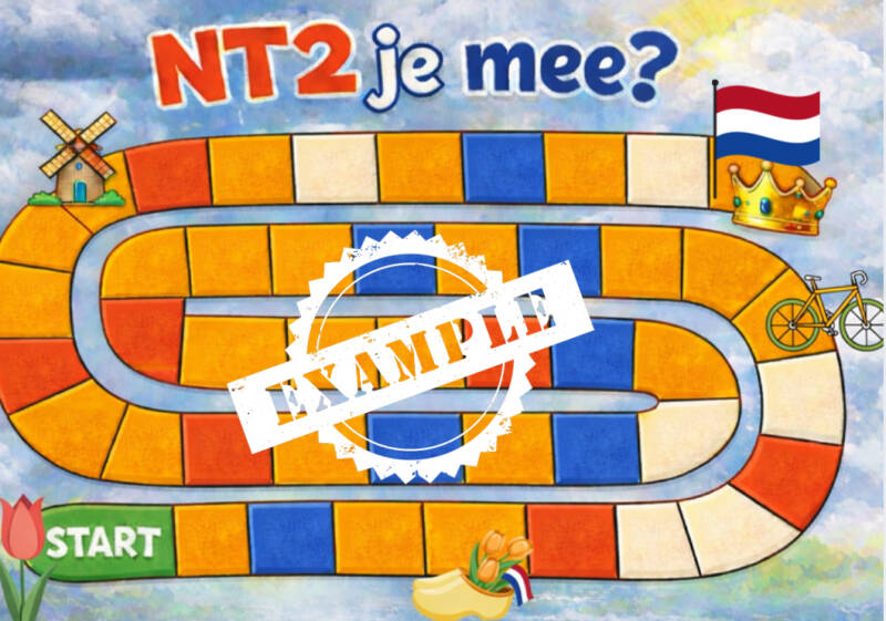NT2 je mee? is een vrolijk bordspel waarmee je op een laagdrempelige manier Nederlands oefent. Met meer dan 150 printbare kaartjes die regelmatig worden aangevuld en een stevig A3-spelbord op kanaalplaat is dit een perfecte activiteit voor NT2-lessen, taalcafés en kleine groepen.